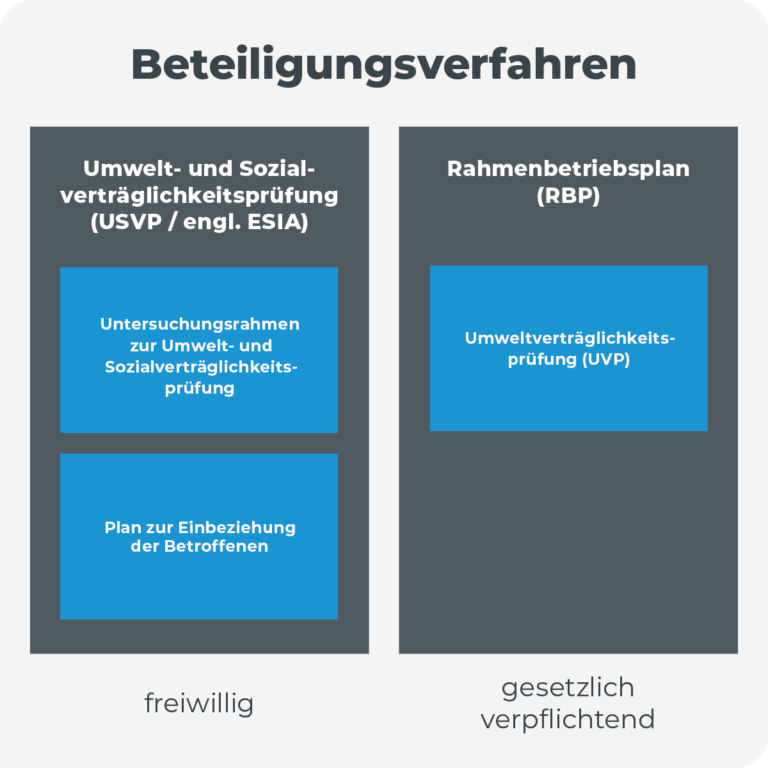 Wichtig zu wissen: Diese Prüfung ist nicht identisch mit der Umweltverträglichkeitsprüfung (UVP), die später im bergrechtlichen Zulassungs- und Genehmigungsverfahren gesetzlich vorgeschrieben durchgeführt wird.