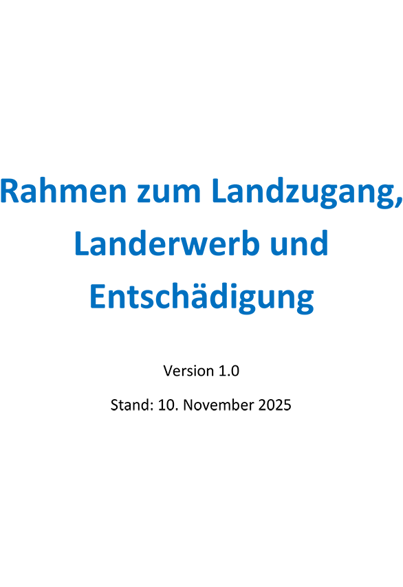 Das Rahmenwerk beschreibt die potenziellen Auswirkungen, den geplanten Ansatz für den Landerwerb, die Entschädigungs- und Bewertungsgrundsätze sowie die Verantwortlichkeiten dafür.